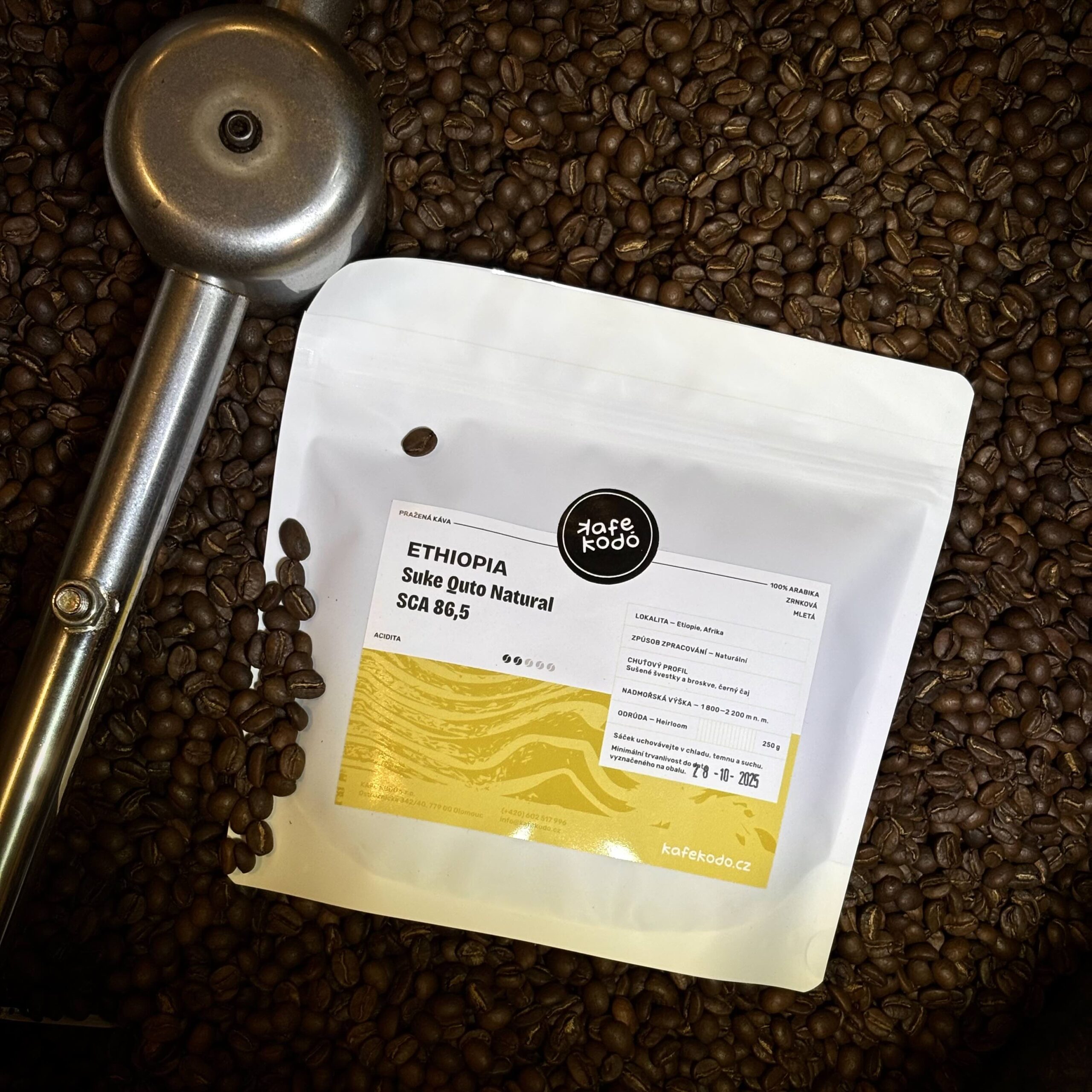 Káva z farmy Suke Quto v sobě spojuje hluboký příběh obnovy etiopské krajiny a výjimečné chuťové kvality. V šálku se rozvíjejí tóny sušených švestek, zralých broskví a černého čaje – elegantní kombinace ovocné sladkosti a jemné čajové hořkosti.